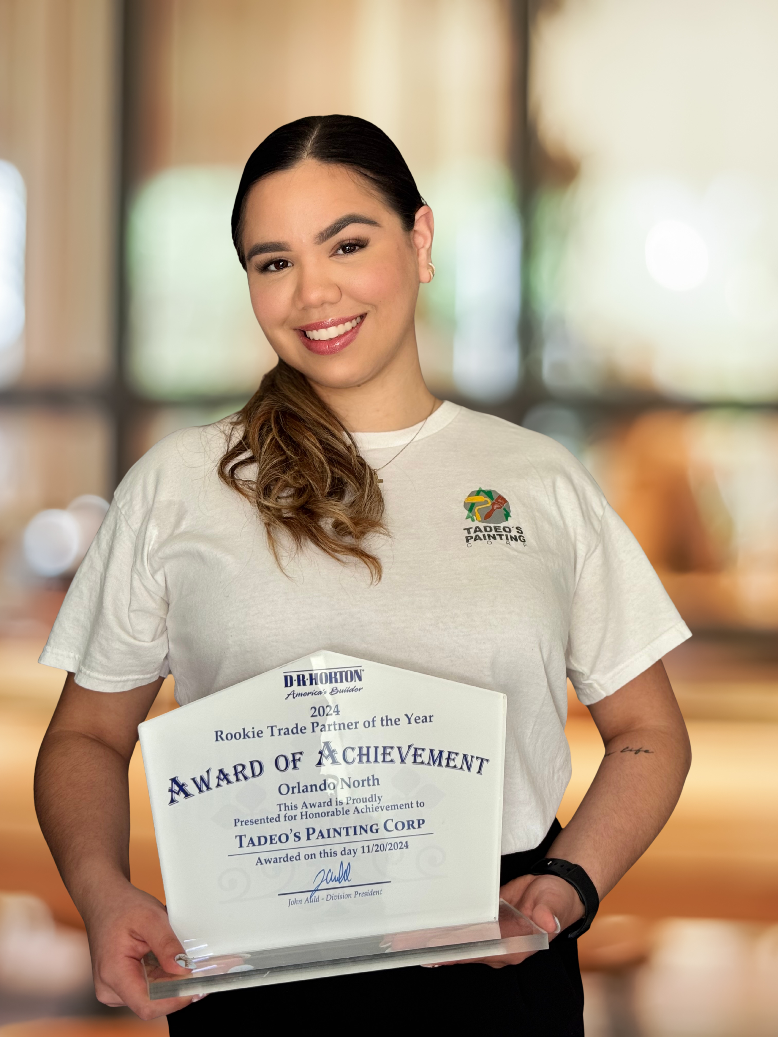 In 2024, Tadeo’s Painting Corp was honored by D.R. Horton —America’s #1 homebuilder— with the Rookie Trade Partner of the Year Award (Orlando North Division), recognizing our commitment to excellence, reliability, and superior craftsmanship.